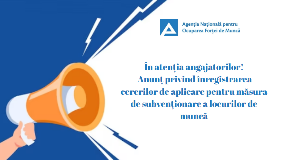 În atenția angajatorilor! Anunț privind înregistrarea cererilor de aplicare pentru măsura de subvenționare pentru crearea sau adaptarea locurilor de muncă