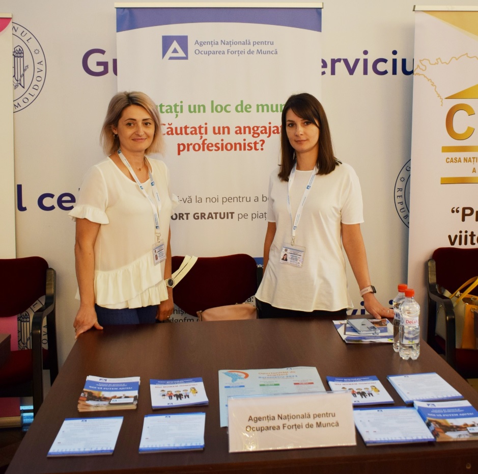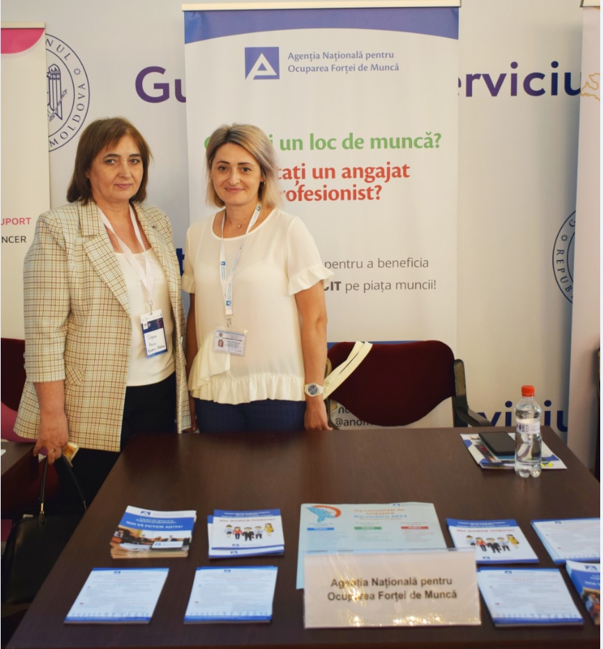 La eveniment, reprezentanții ANOFM prezintă serviciile și măsurile de ocupare pe piața muncii, locurile de muncă libere declarate de angajatori.